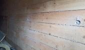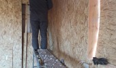 На утепляемой поверхности стены возводится каркас и формируются полости для укладки материала. Материал нагнетается в полость стены через отверстия проделываемые в материале ограждающей конструкции с помощью поворотного сопла. Отверстия проделываются на расстоянии не более 1,5 метров друг от друга. Материал укладывается плотностью 75кг/м3. Толщина слоя обуславливается расстоянием от стены до ограждающей конструкции.